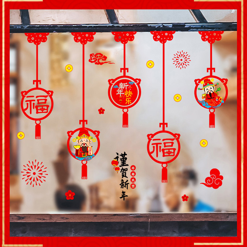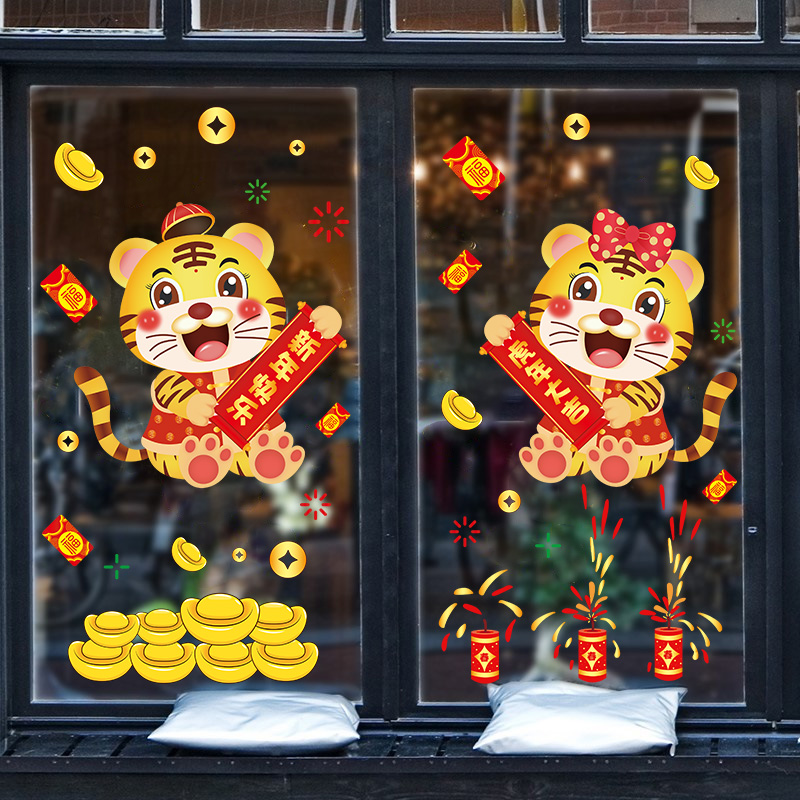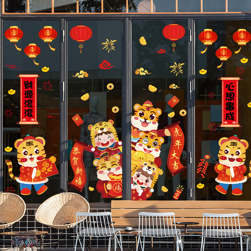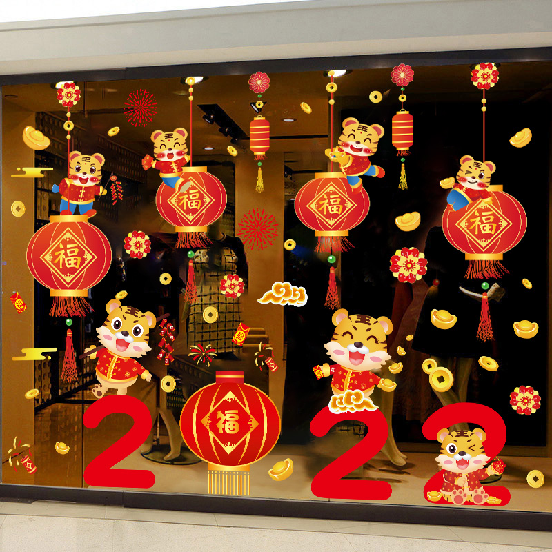 Fragrant Colors 2022 New Year Happy Tiger Year Spring Festival Decorative Glass Door Stickler Window Applid Window window stickers for Chinese New Year