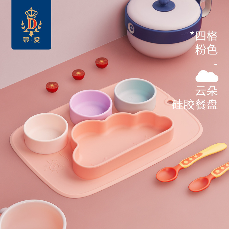 (Special Price Clear Bin) Tie Child Silicone Tray Dinner Plate Sub-Food Bowl Baby Cutlery