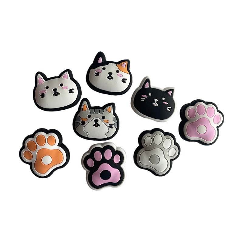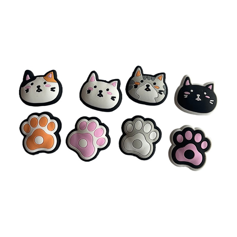 1 pink cat, 1 gray cat, 1 orange cat, 1 pink cat paw, 1 orange cat paw, 1 gray cat paw, 1 black cat paw, 1 black cat