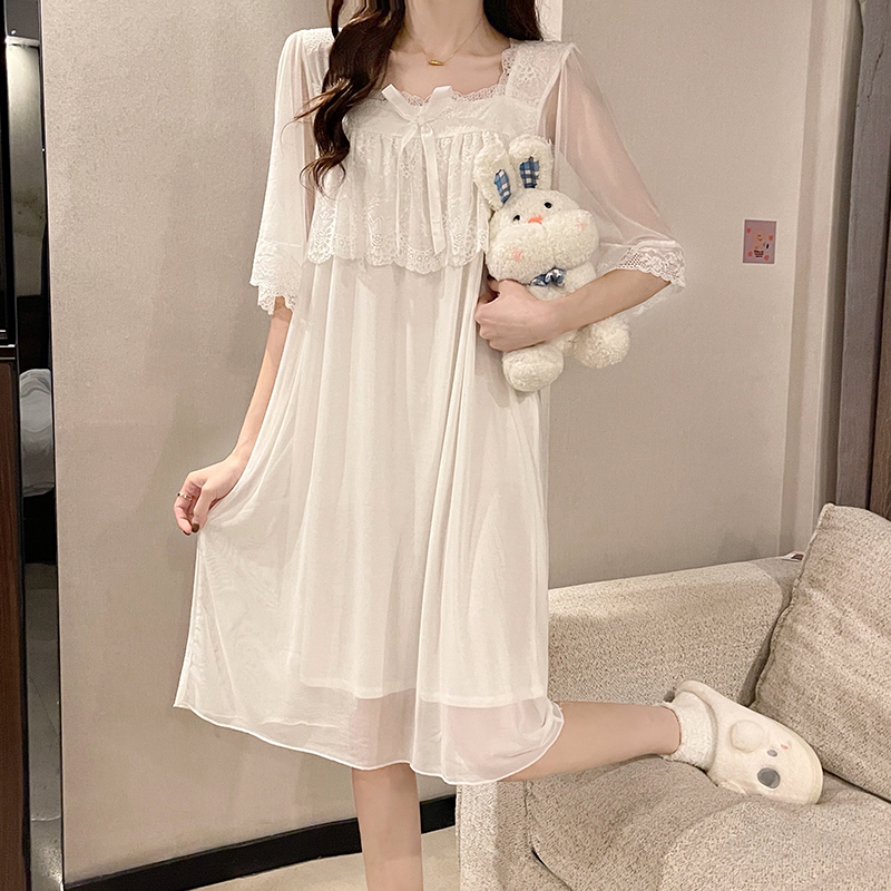 2022 New Sleeping Dress Woman Summer Short Sleeve Modell Pure Cotton Net Yarn Palace Princess Wind Spring Autumn Ice Silk Home Clothing