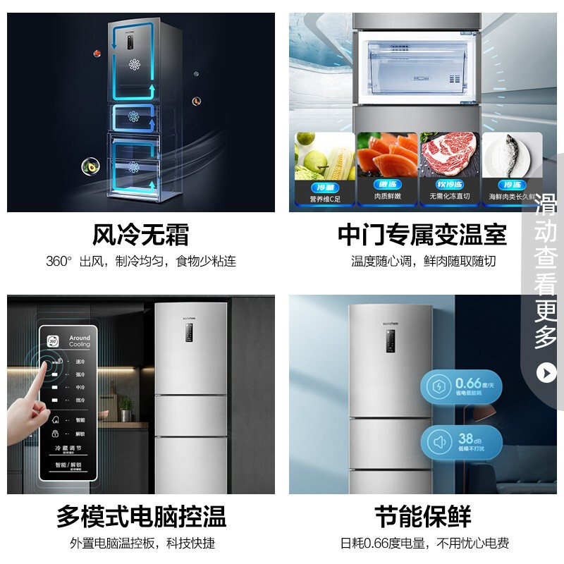 Ronshen Yong Sound BCD-218WD12NY Home Three door refrigerators air-cooled without frost intelligent power saving