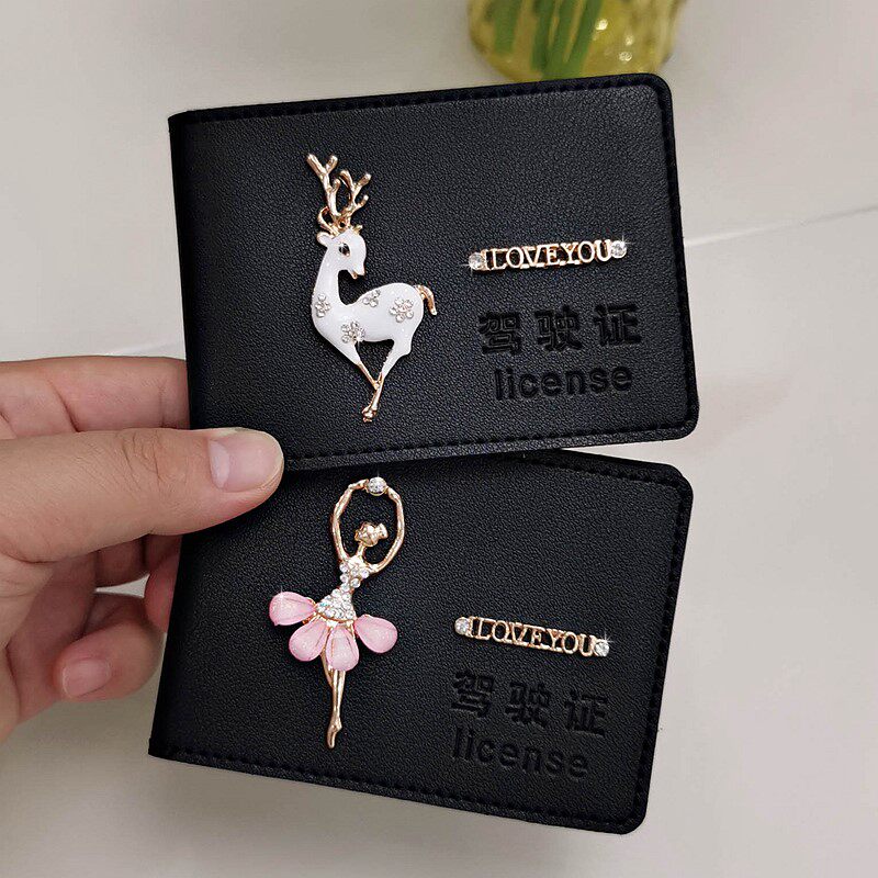 New driver's license leather case female motor vehicle driver's license lady diamond-encrusted crystal driver's license this ultra-thin card package ID clip