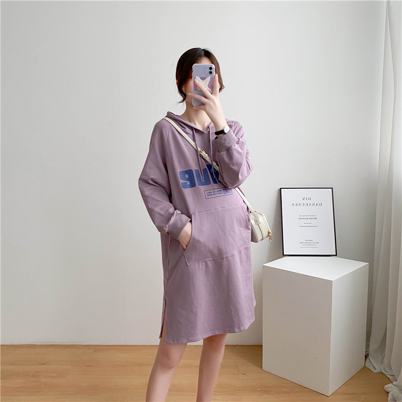 Pregnancy Woman Dress Spring Dress New Korean Version of the Long version Lianhood Weak clothing Loose Display Slim size Loose Long Sleeve Foreign Dress