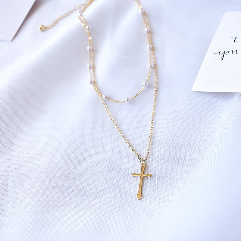 choker net red retro s simple double layer pearl necklace with female damp lock bone necklace neck with cross neck necklace