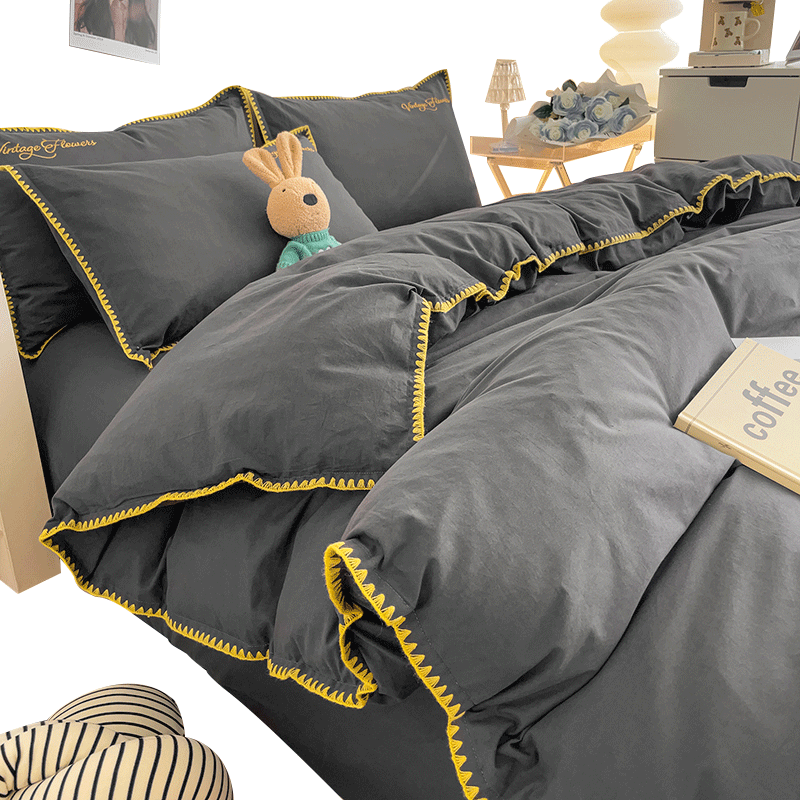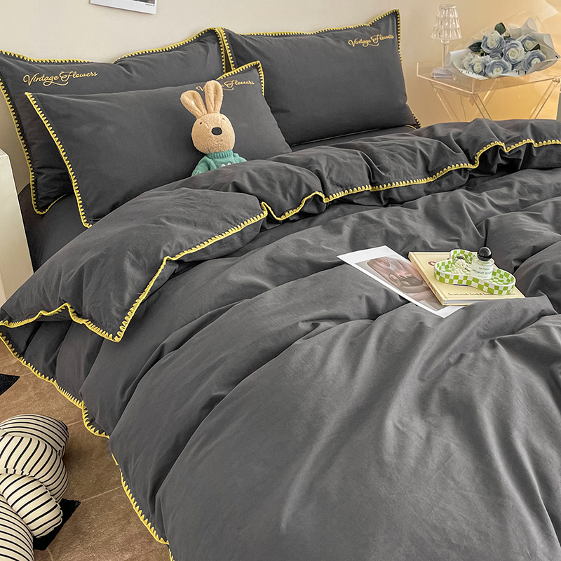 Nordic ins pure cotton washed cotton four pieces set 100 All cotton quilts covered with cover for men's bed linen three sets