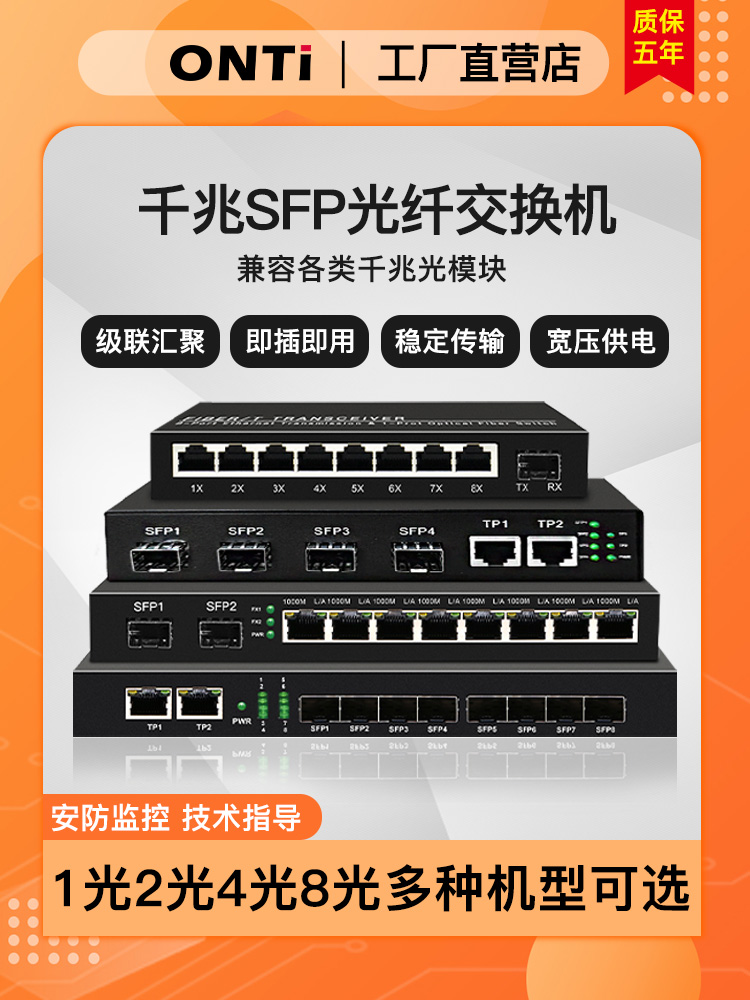 Full Gigabit SFP fiber optic switch SC LC port 1 2 4 8 optical 2 4 8 electrical convergence cascade fiber optic transceiver