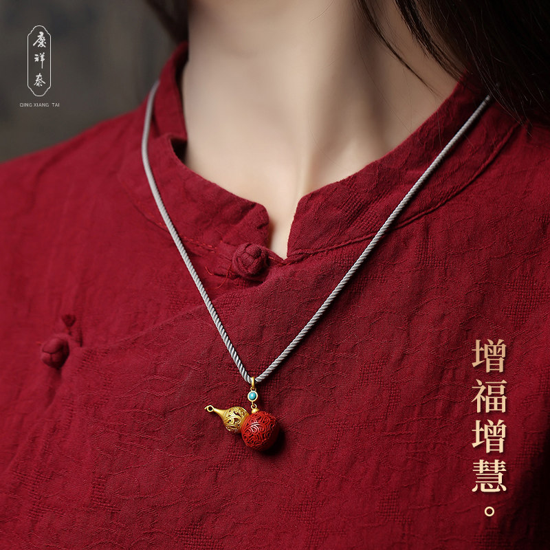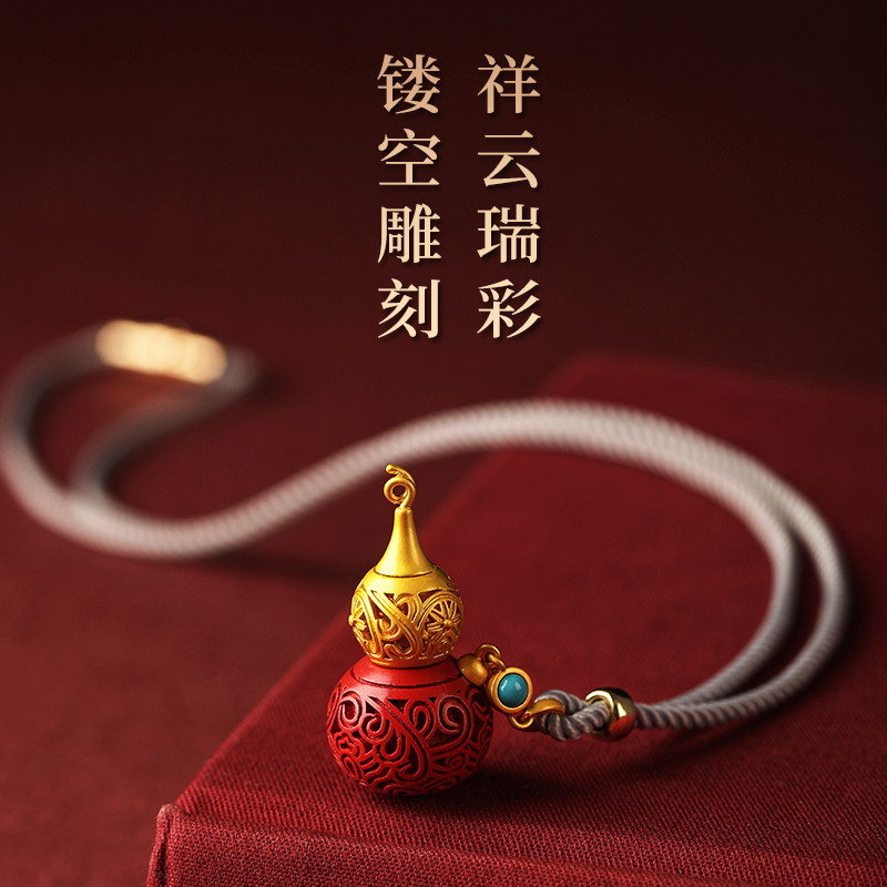Cinnabar gourd pendant female honmei year tiger men's amulet necklace natural raw ore Fluke Gawu box pendant