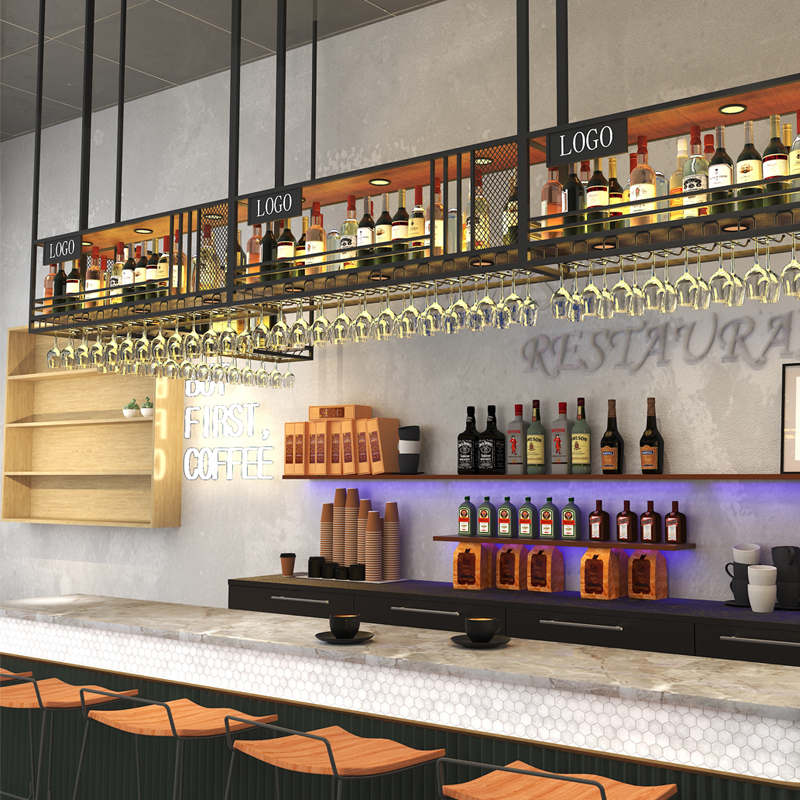 Wall-mounted wine cabinet hanging cabinet wrought iron hanger hanging goblet rack industrial wind hanging rack hanging cabinet above the bar