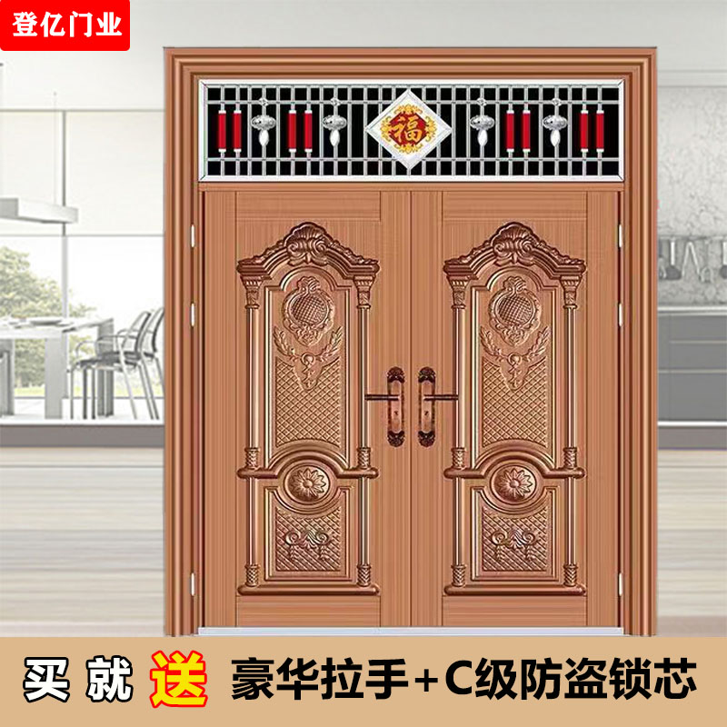 Custom 304 stainless steel double door rose gold door rural entry door color steel door sunscreen, rust and fade