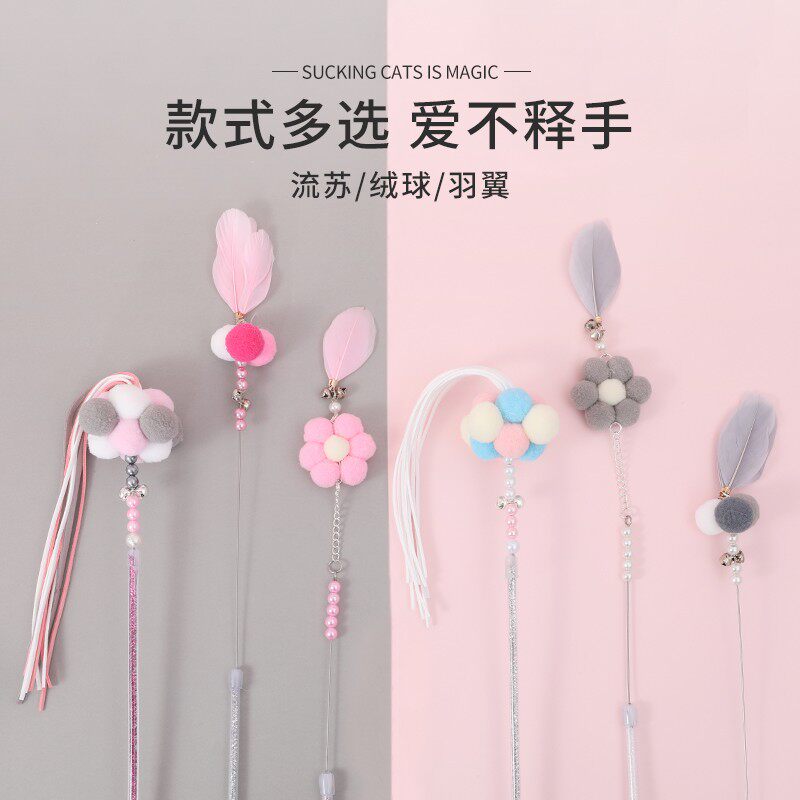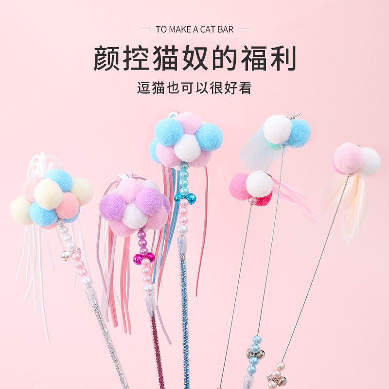 Cat Toy Self-Hi-Smother Resistant to Bite Long Pole Fairy Tease Cat Baseball Suit Feather With Bell Infant Cat Supplies