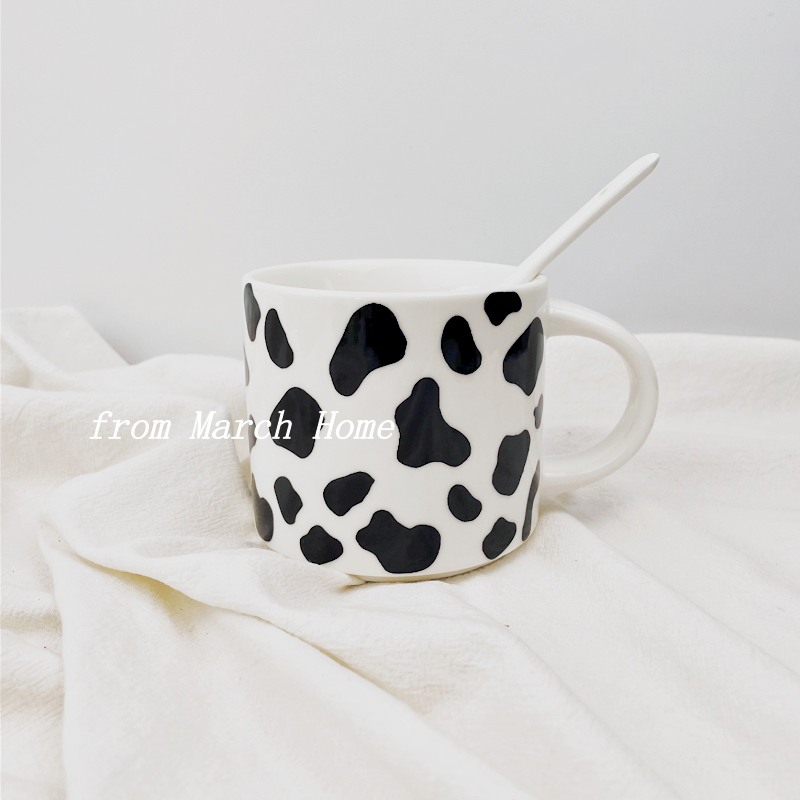 Ins small group milk grain mug high color value net red ceramic cup with lid spoon cute girl cup custom