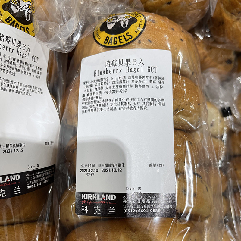 Suzhou costco opener SF comprehensive bagel bagel original blueberry whole wheat bread low calorie