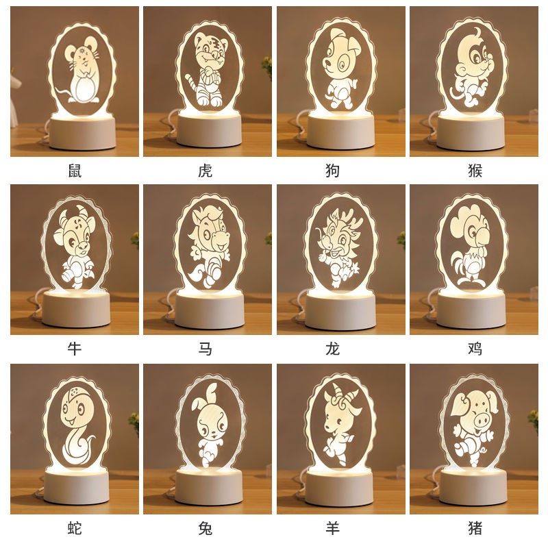 Export quality 2021 new creative zodiac 3D night light bedroom table lamp girl gift lamp plug-in sleep