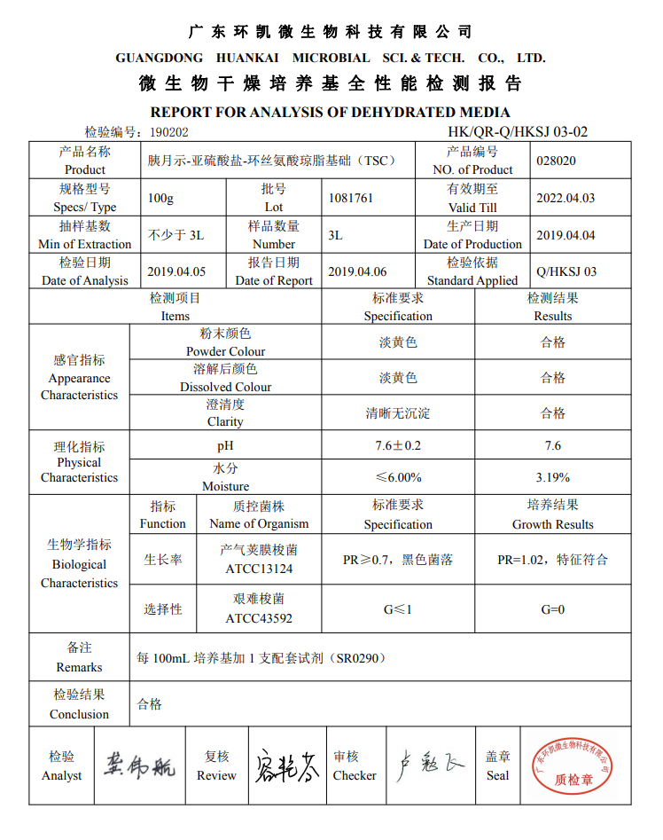 Peptone-sulfite-cycloserine agar base TSC culture medium Guangdong Ring Kee 028020