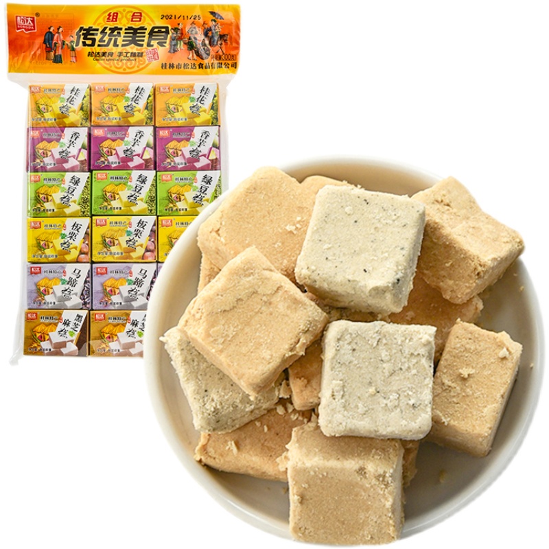 Guangxi osmanthus cake Songda traditional cuisine Composition 300g chestnut pastry black sesame crisp green bean paste pastry cake cake