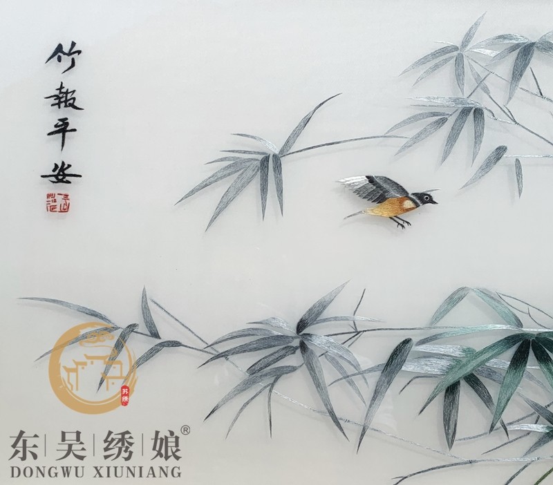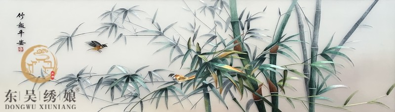 Embroidered large horizontal version Bamboo flowers Bird dining room Living Room Book Room Decoration Handmade Su Embroidered finished bamboo newspaper Ping An hanging painting