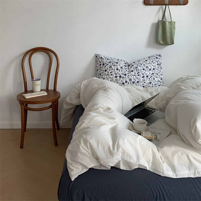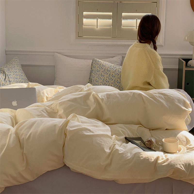 Korean cream Cream Crushed Flowers Pure Cotton Four Pieces Ins Pure Cotton Quilt Cover 1 5m1 8 m Washed Cotton Sheet Bed