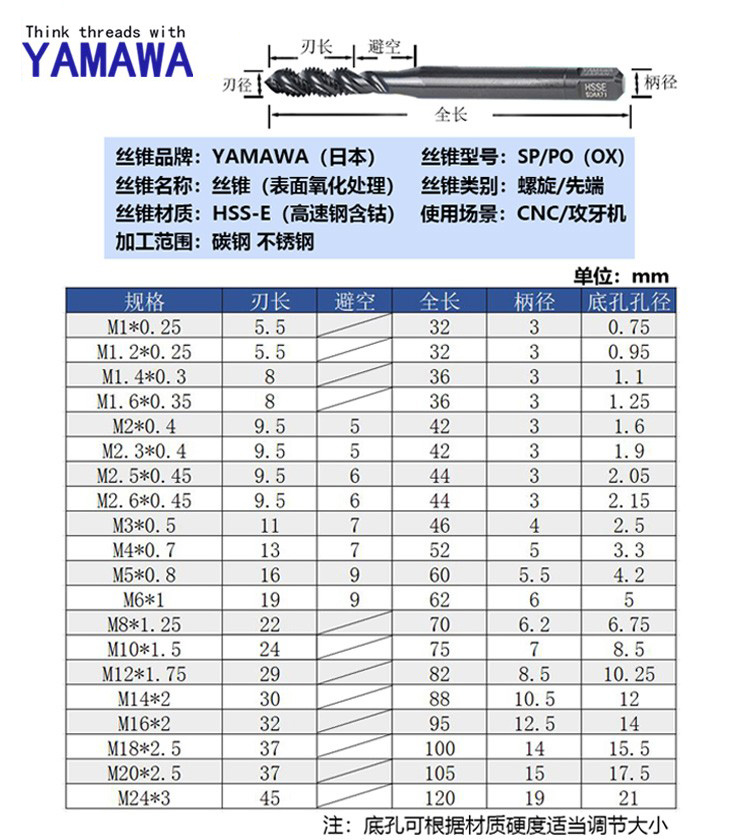 YAMAWA black spiral M1*0 25YAMAWA black spiral M1 2*0 25YAMAWA black spiral M1 4*0 3YAMAWA
