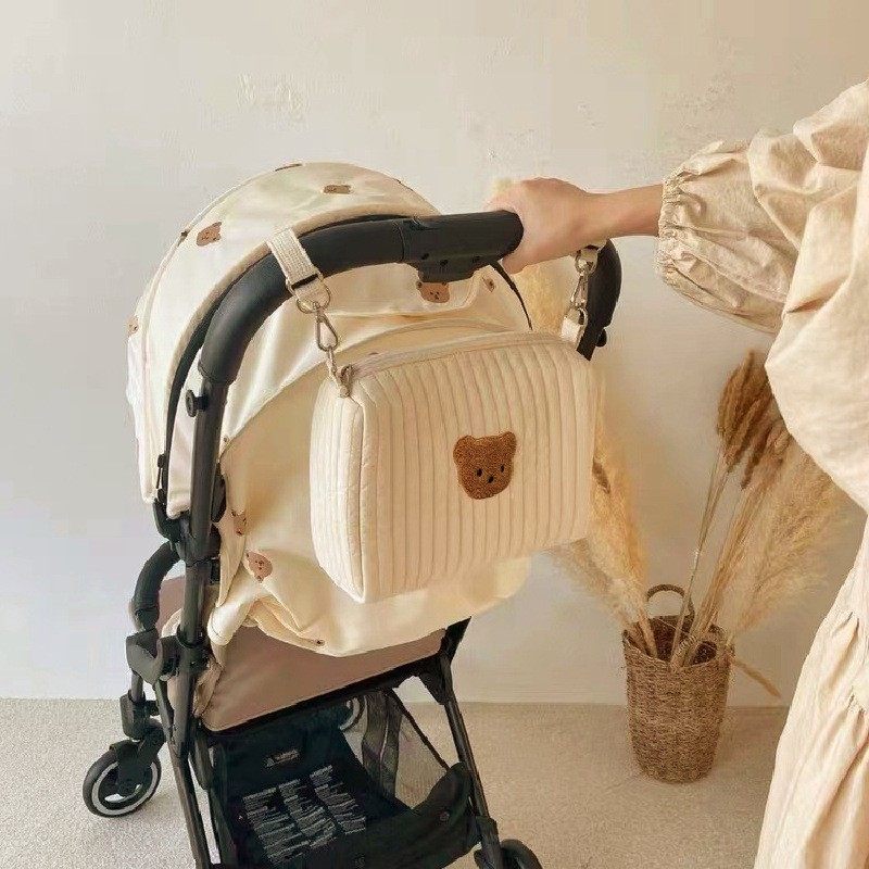 South Korea Ins Wind Embroidery Little Bear Perfuncts Bag Baby Stroller Hanging Bag with Bag Mommy Out of Diaper Bag