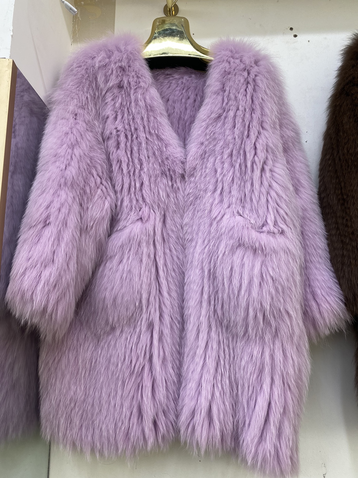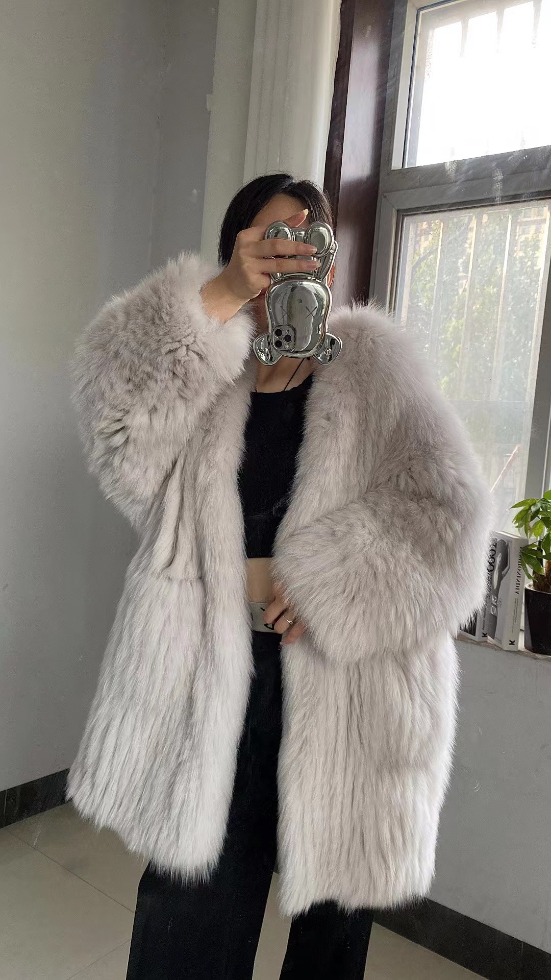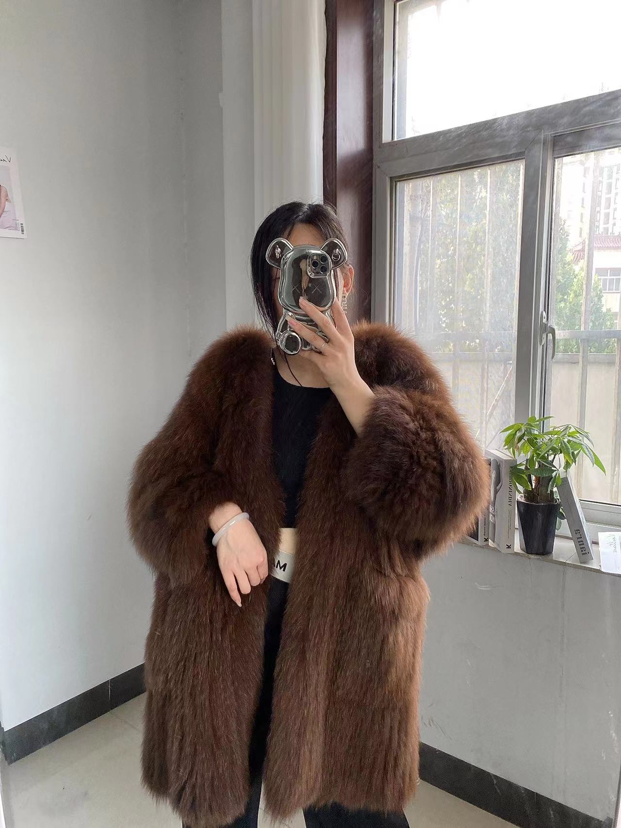 Mid-length fox fur whole-leather woven coat Thick double-sided woven fur V-neck warm long-sleeved young style - Taobao