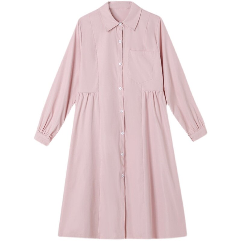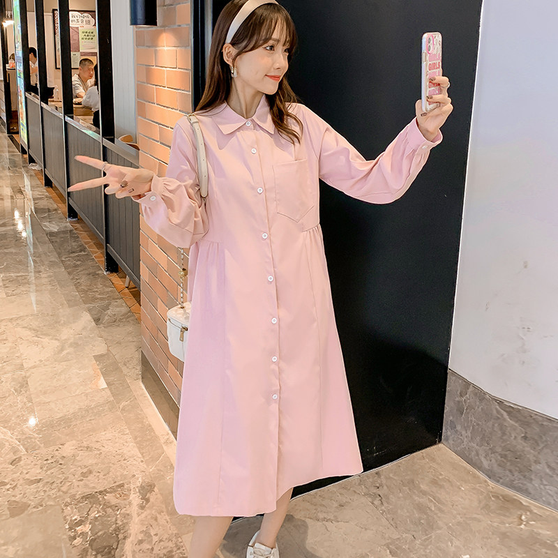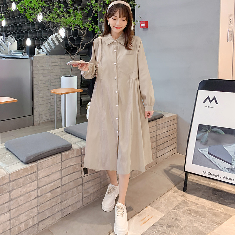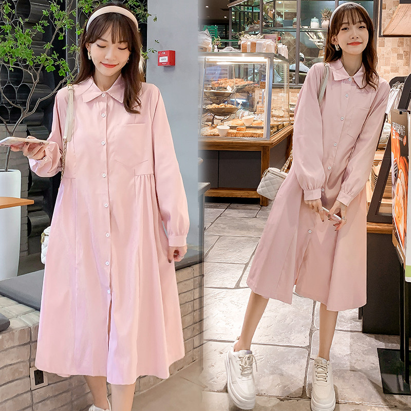 Pregnancy Woman Dress Spring Dress New Korean Version Long Version Long Sleeve Foreign Dress Grand Scale Code Loose and Slim Collar Doll Skirt Tide