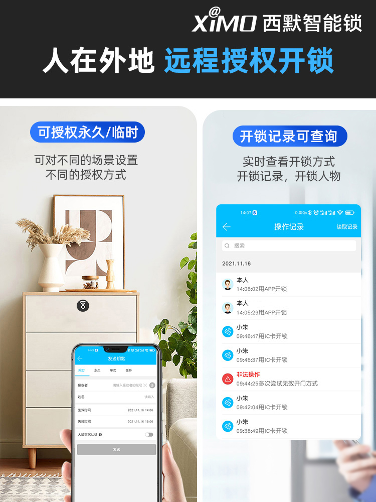 B21N mobile phone NFC unlock, swipe card to unlock, smart bracelet*1, 3 small cards B21L mobile phone APP unlock, NFC unlock, swipe card to unlock, small card*3
