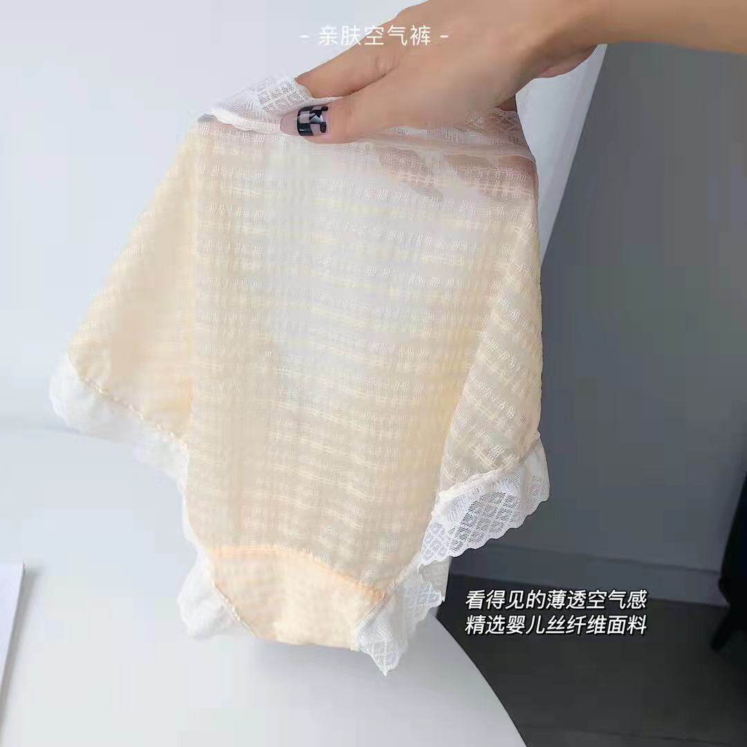 Skin-friendly air pants no trace lace antibacterial breathable middle waist sexy graphene hip women's briefs boxed