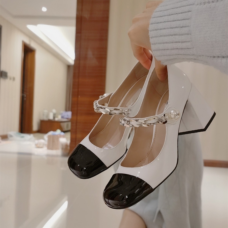Vintage Mary Jane women's shoes, high heels, small fragrance style, French style, 2023, new autumn leather shoes, chunky heels, single shoes, sandals