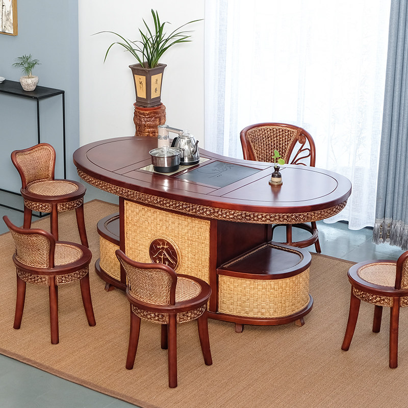 Small red wood tea table Small red wood tea table 1 rotary chair 2 small chair small red wood tea table 1 rotary chair 4 small chair Large red wood tea table Large red wood tea table 1 turned