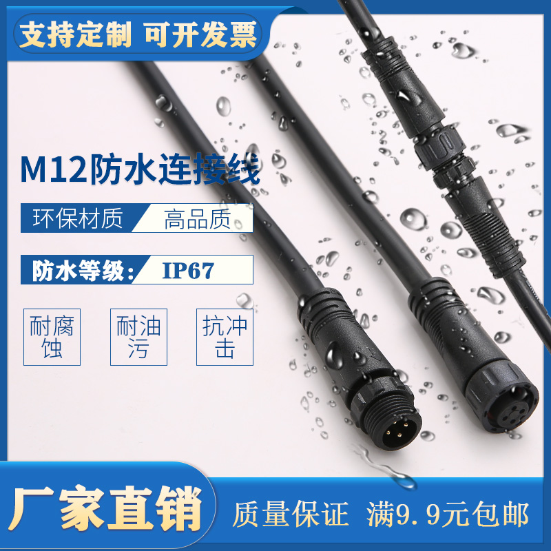 m12 male and female butt plug waterproof connector power wire aviation industry quick connector 2 cores 3 cores 4 cores