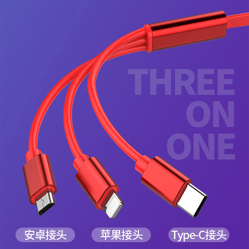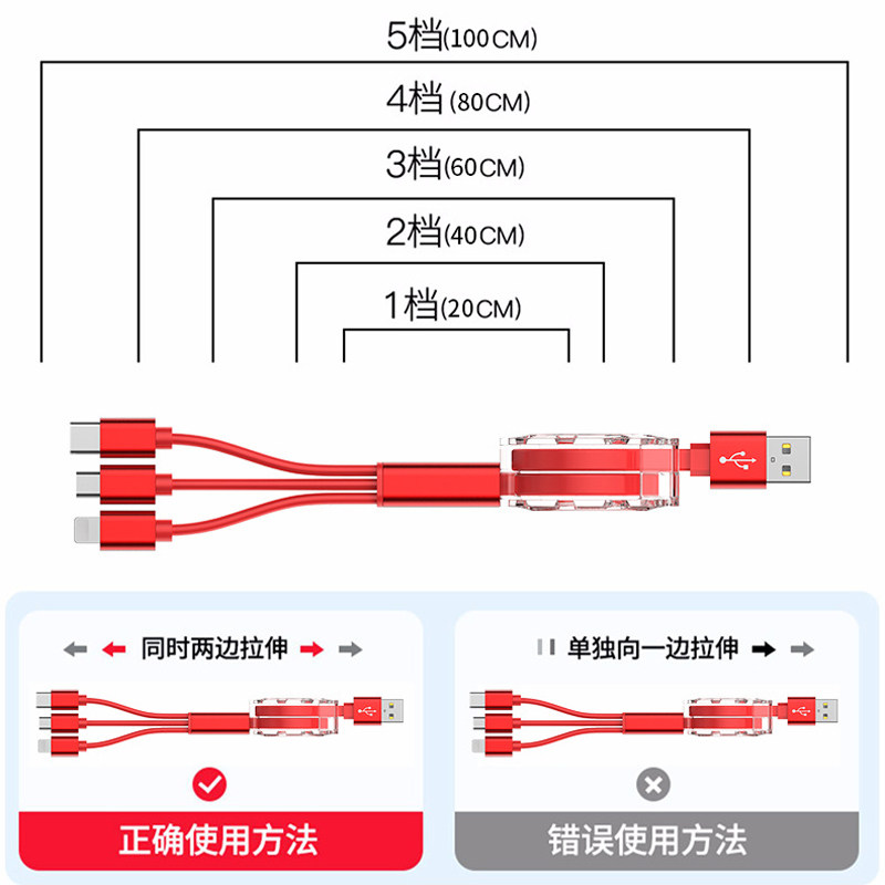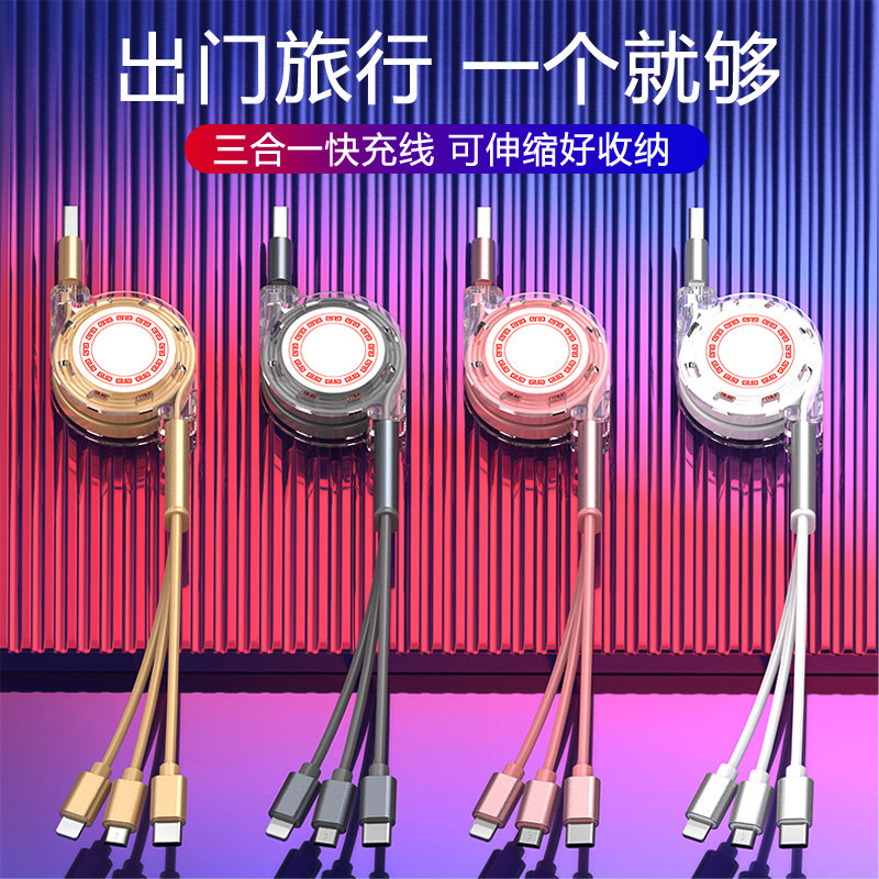 One drag three charging wire stretching three-in-one mobile phone fast charging type is suitable for Apple data line Android custom logo multi-purpose shrinkable multi-point general-purpose flush vehicle on board