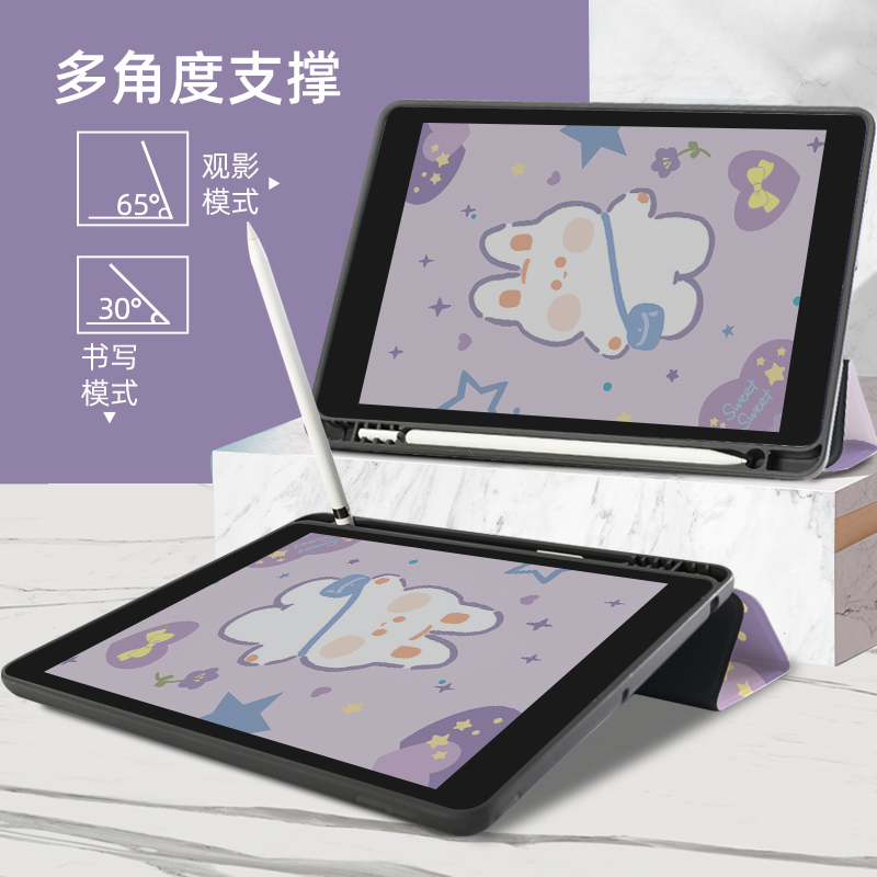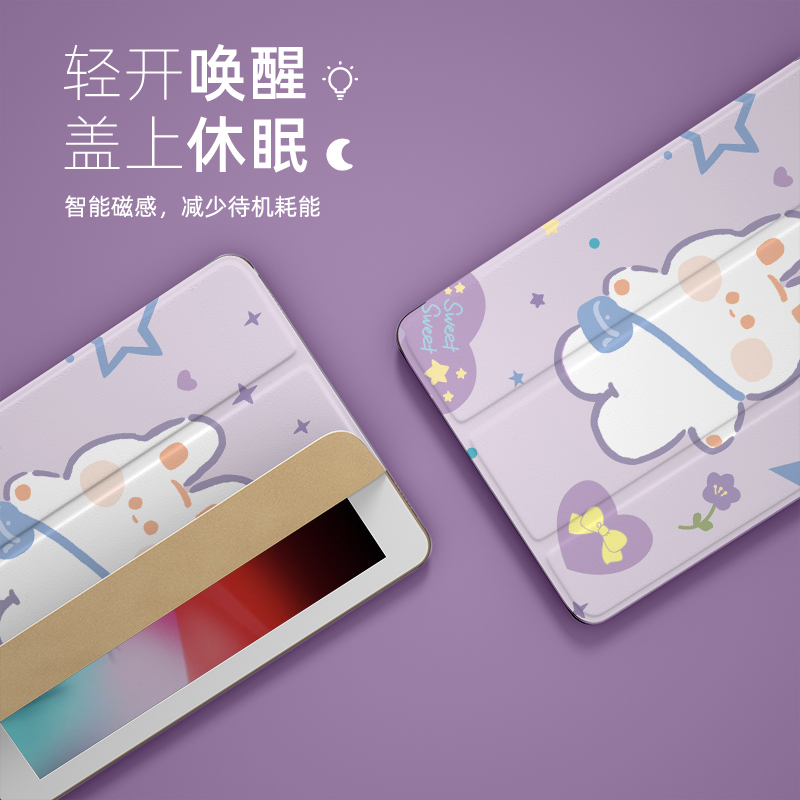 ipad2021 protective case with pen slot air4 tri-fold pro11 anti-bending 8 all-inclusive mini6 tablet sleeve 2020 models suitable for apple 9th generation 9 mini 5 cute 7 book style