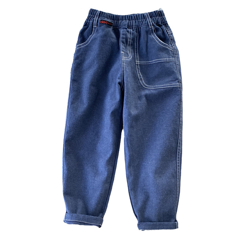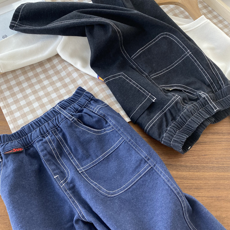 Looser version boy big pocket jeans Luo Radish Pants Tightness Belt Spring Autumn Long Pants 2022 Spring Dress New