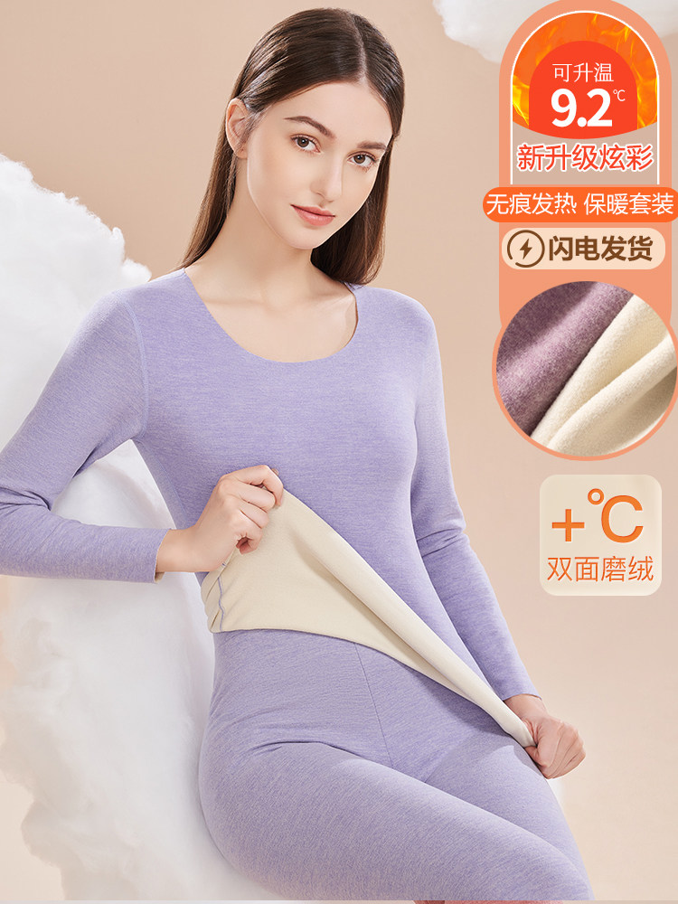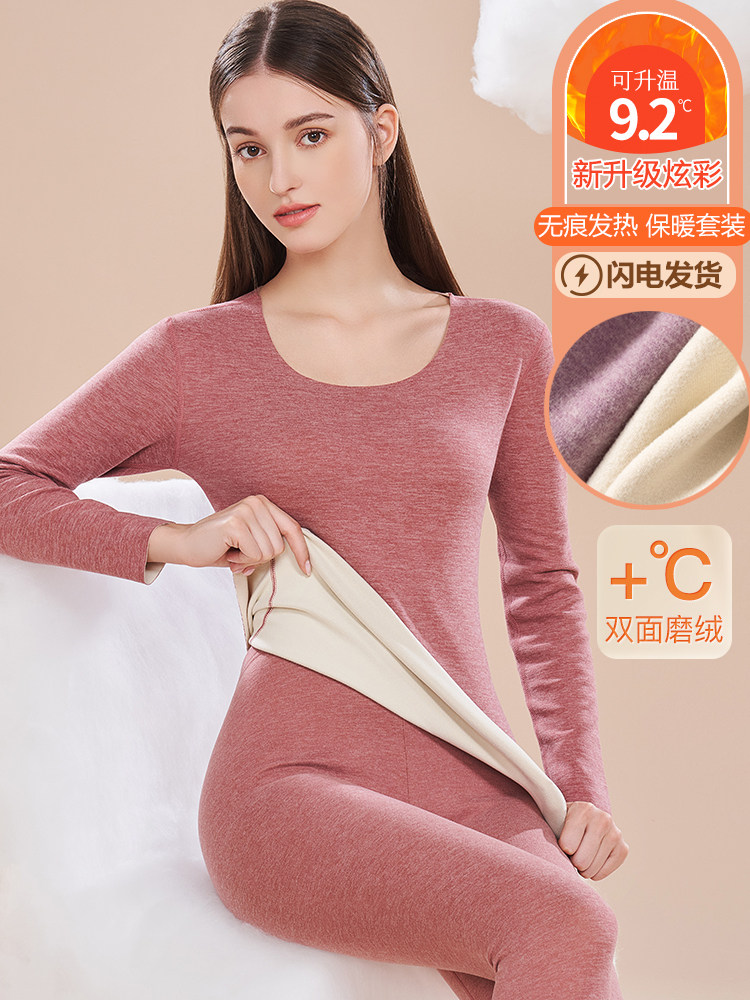 Official website Tingmei Seamless Warm Underwear Woman Double Face Grinding heating Beauty Thickening Plus Suede Pure Color Autumn Pants-Taobao