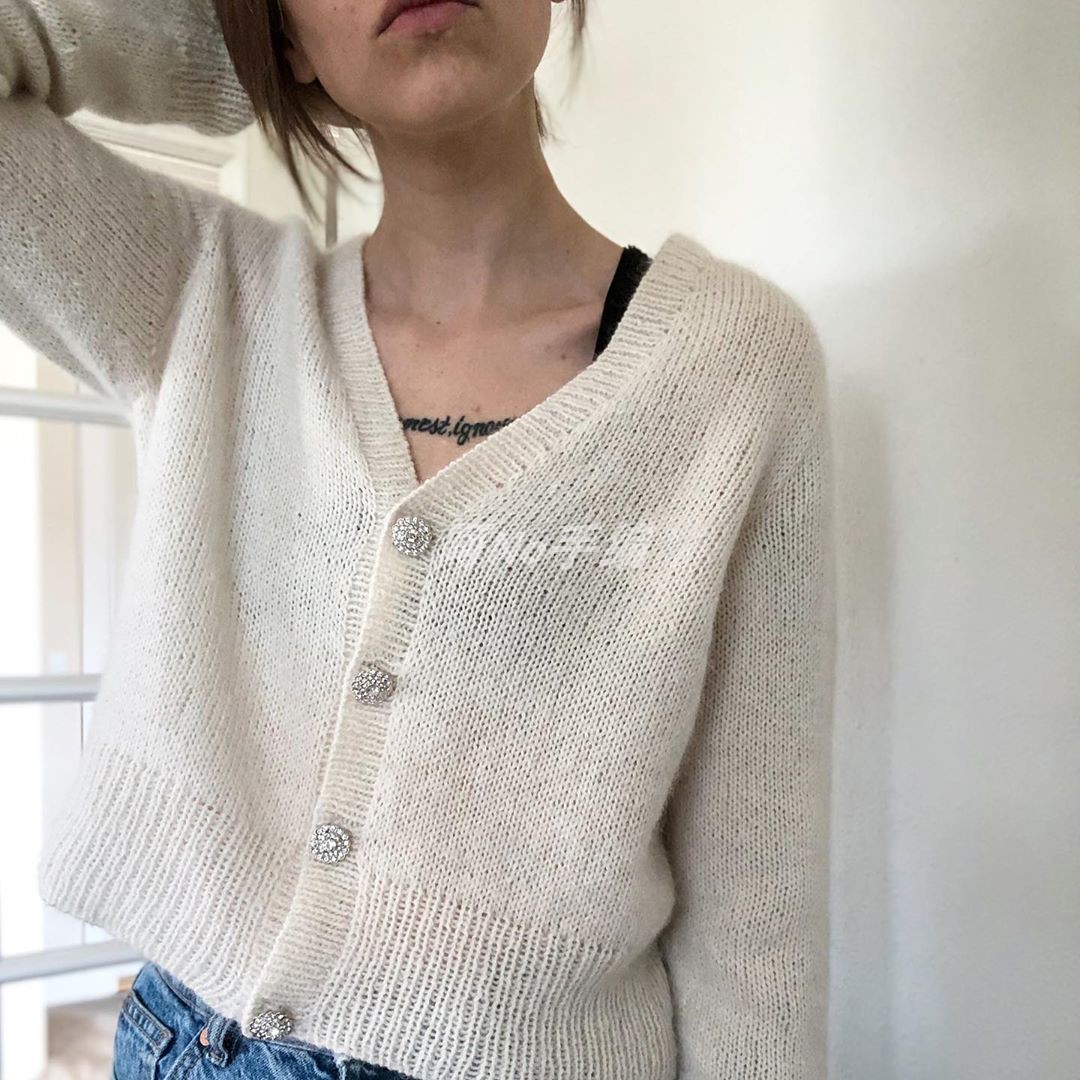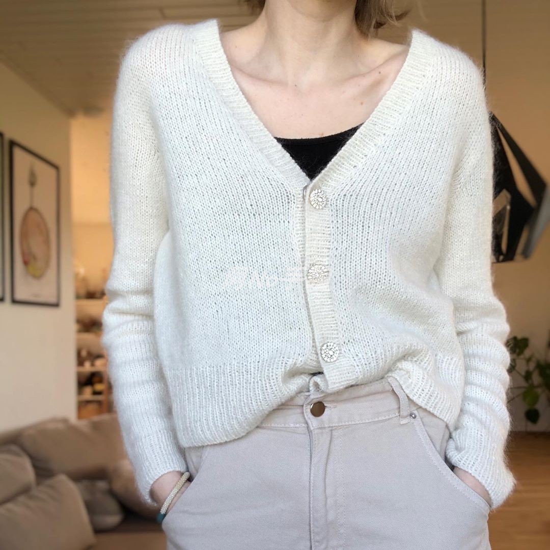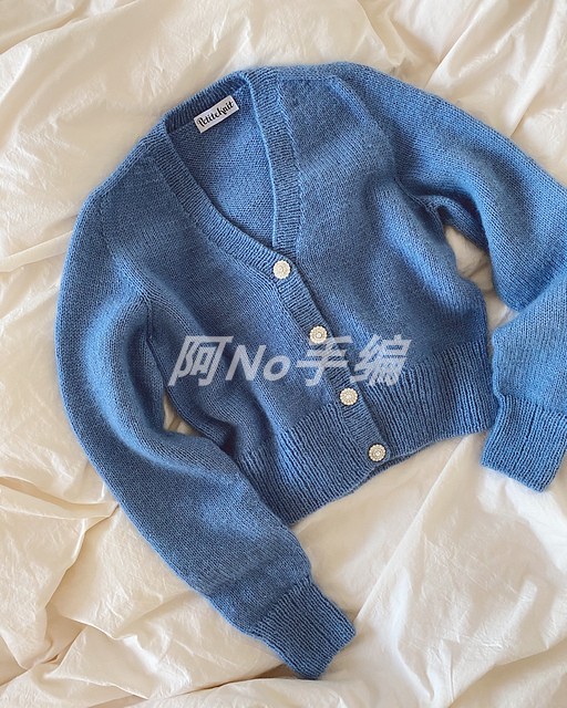 April cardigan Saddle shoulder small short V-neck cardigan Ah No Chinese weaving diagram text description