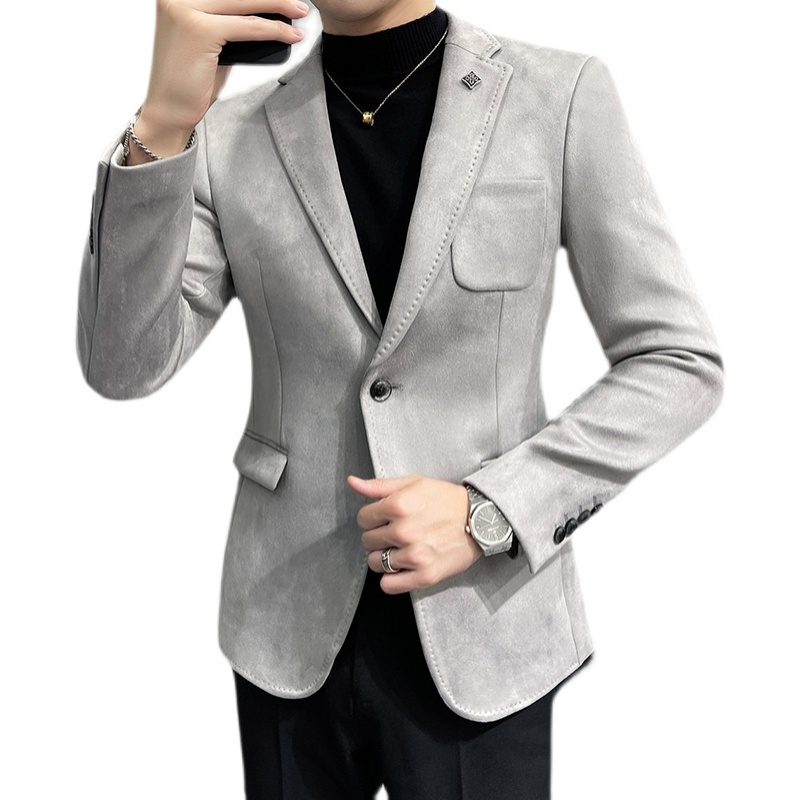 Suede suit jacket men's spring and autumn thickened men's single western shirt business casual ruffian handsome suit British style