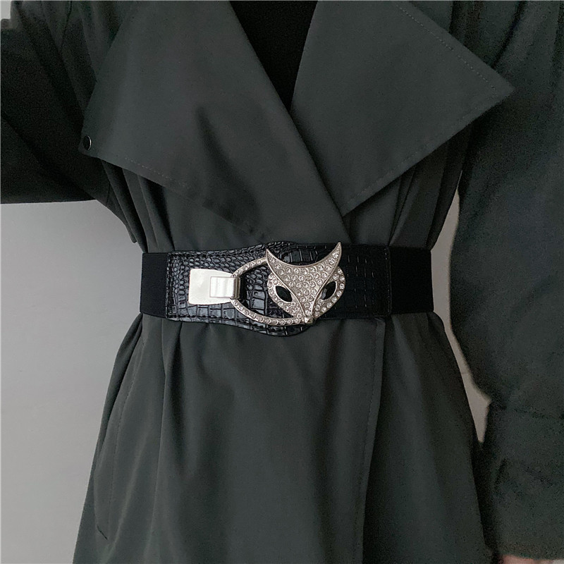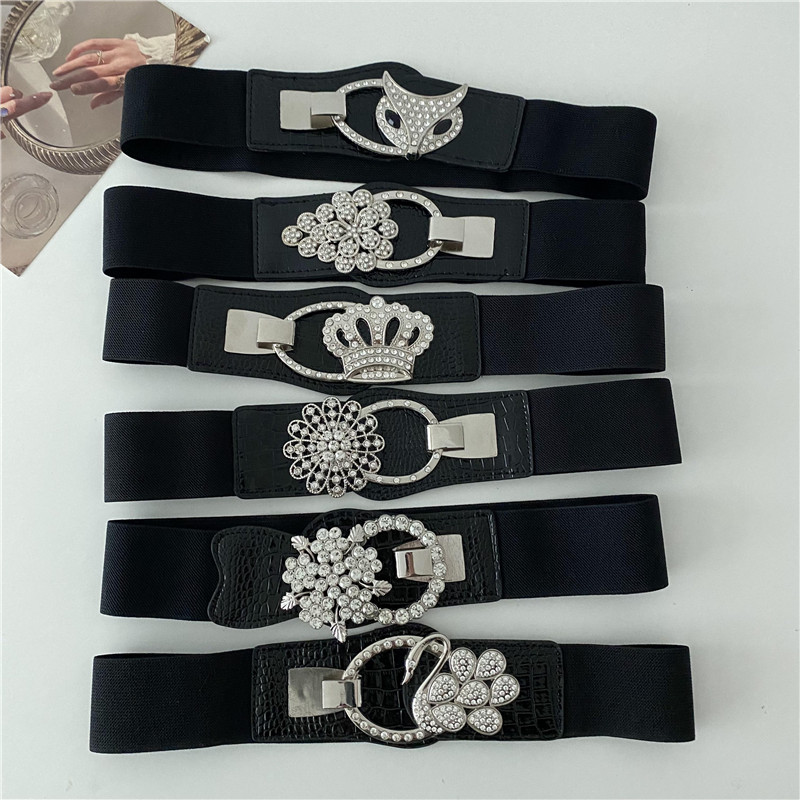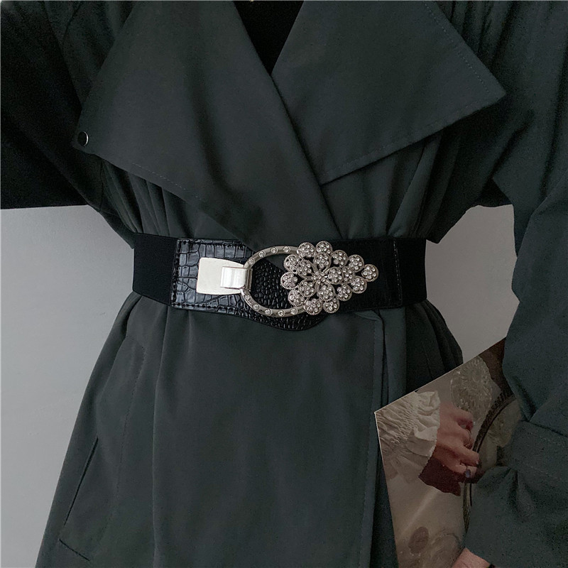 High-end Rhinestone Elastic Belt Ladies European and American fashion waist with suit coat windbreaker with wide waistband trendy