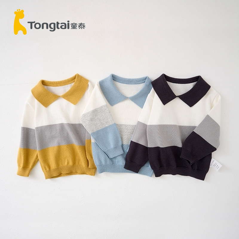 Tong Tai Chunqiu 1-4-year-old infant male and female baby clothes pure cotton cover head turning tide cute sweater blouse