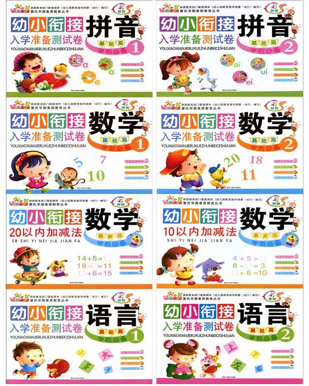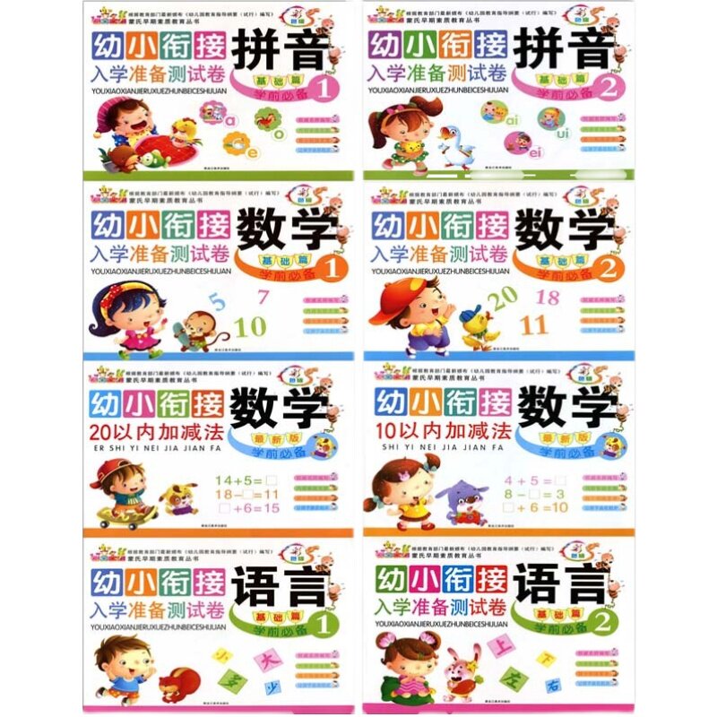 Young and small bridging preparation for preschool teaching materials All 8 This kindergarten teaching materials pinyin mathematical language homework exercise book
