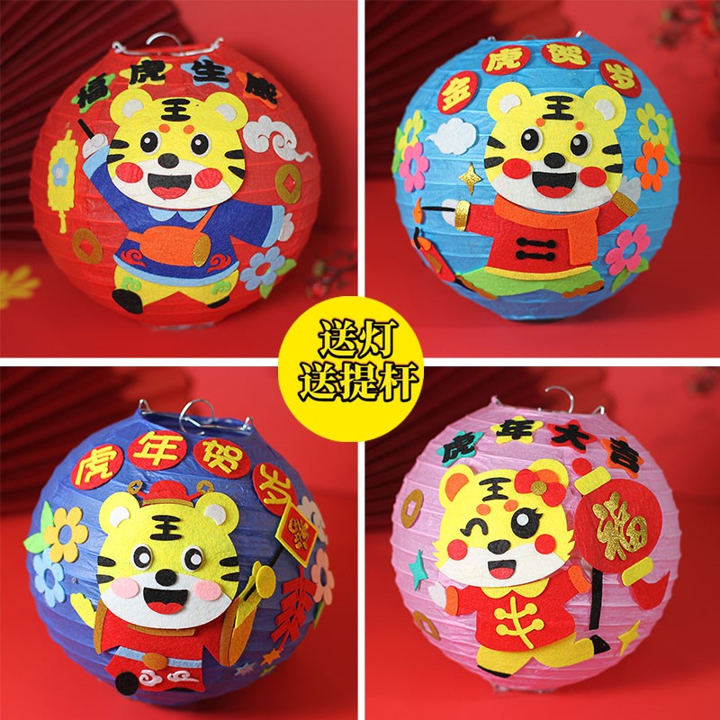 Light brown peacock blue card its color bright yellow fluorescent yellow army green light green color light yellow orange ink green watermelon red green sky blue tiger year lantern (L series mixed hair) send lantern riddle New Year walk coal oil lamp (