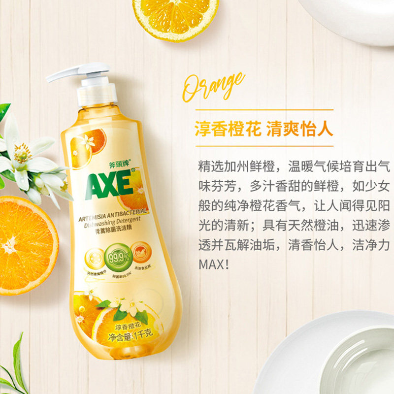 AXE axe brand Qinghao orange flower detergent wash fruit and vegetable household household sterilization 1kg*3 large bottle of skin care to oil
