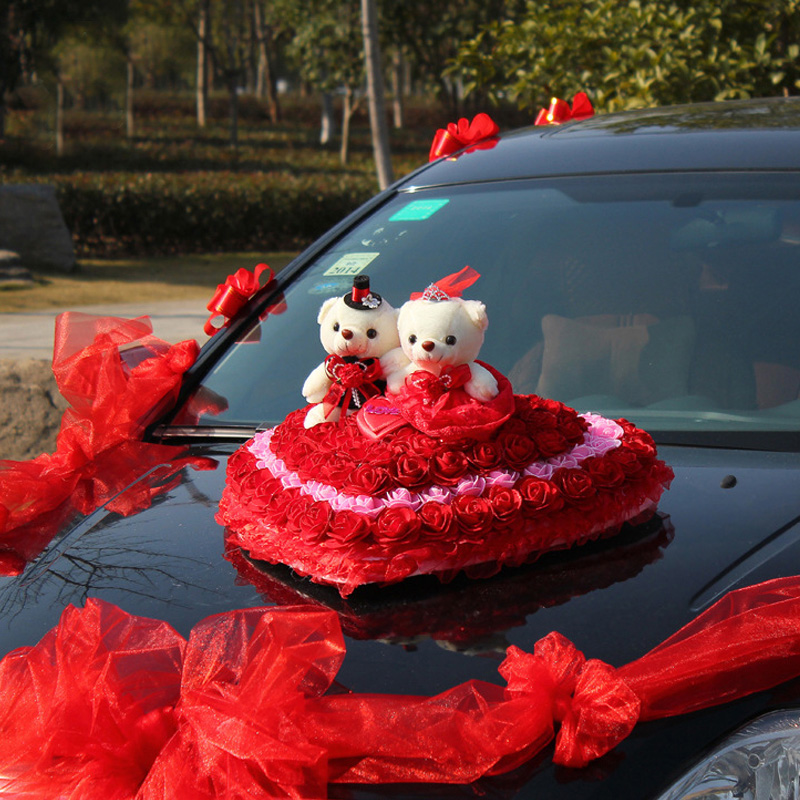 The wedding car decorates bear plush doll loop cart with a doll cocktail 18 cm couple wedding bear wedding celebration