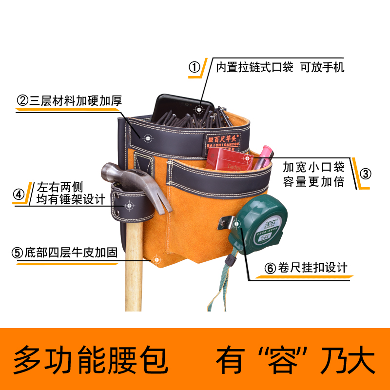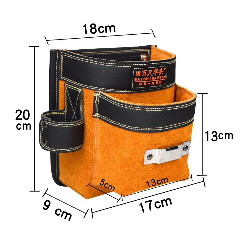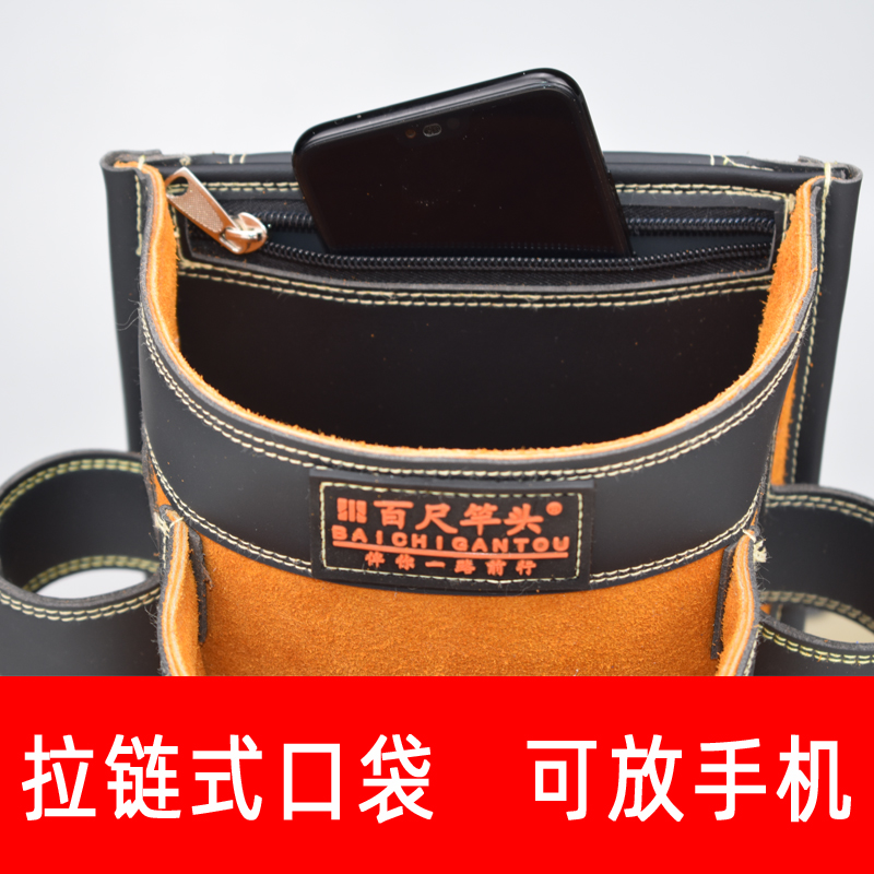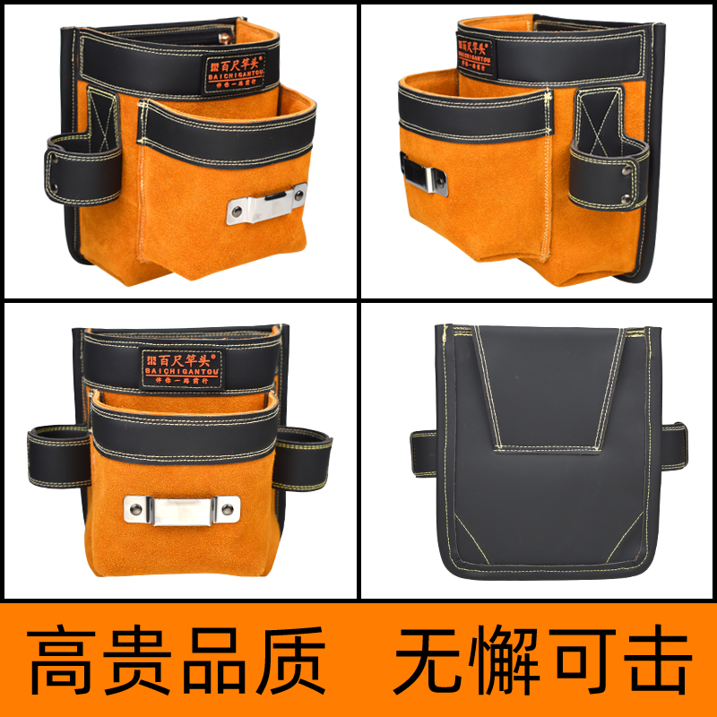 Cow Leather Nail Pocket Furnishing Carpentry Special Nail Bag Kit Nail Pocket Worksite Construction Mobile Phone Bag Waist Pocket Nail Bag