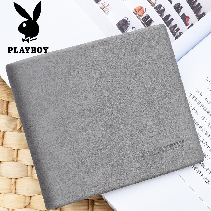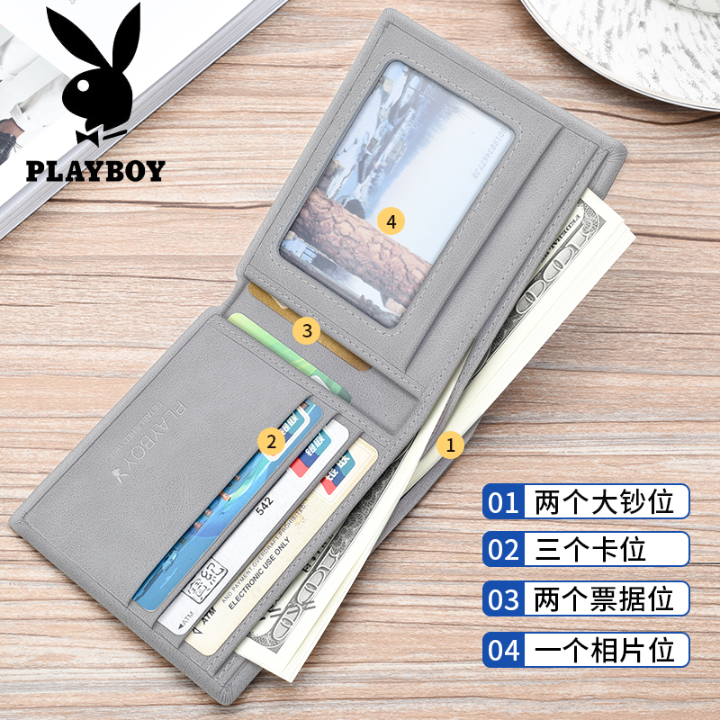 Flowers Playboy men's wallet Short money clip 2021 new driver's license integrated card bag youth college leather wallet-Taobao