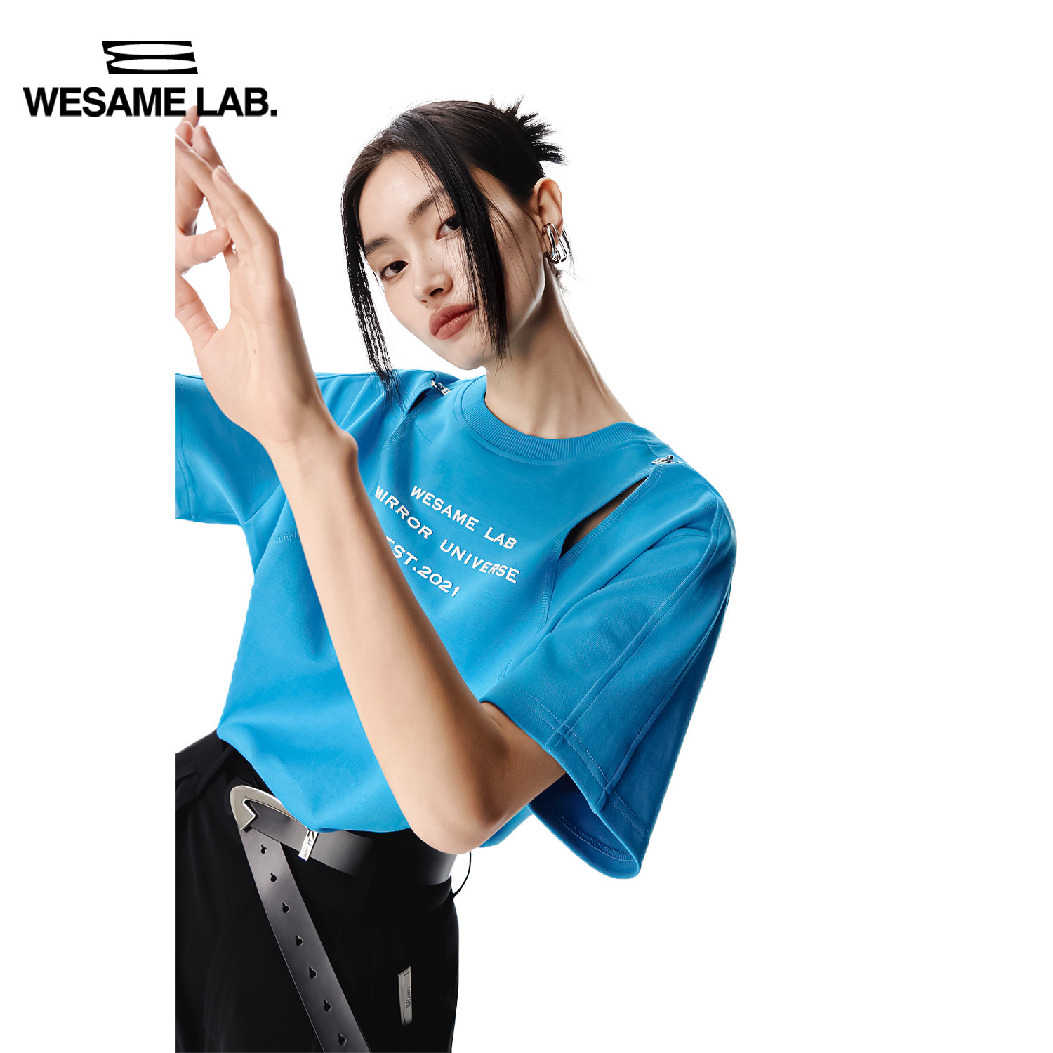 WESAME LAB design sense high street T-shirt women's hollow three-dimensional printing designer retro short sleeves