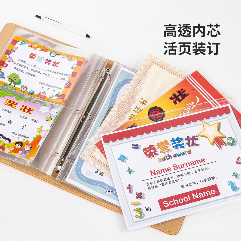 Sky Color Award Collection Book of Boys Girls Children Kindergarten Elementary students a4 creative students Honorary collections of leather loose-leaf certificates Letter of award Letter of appointment Letter of appointment Letter of admission Collection of information