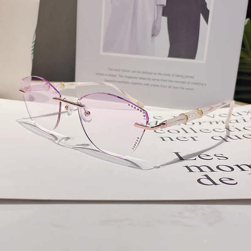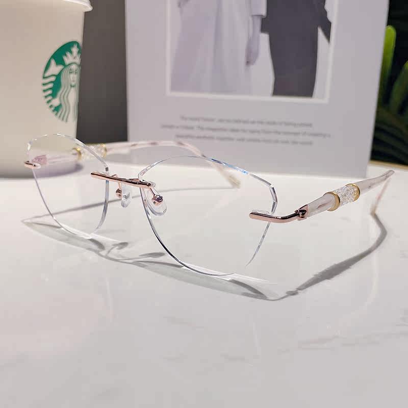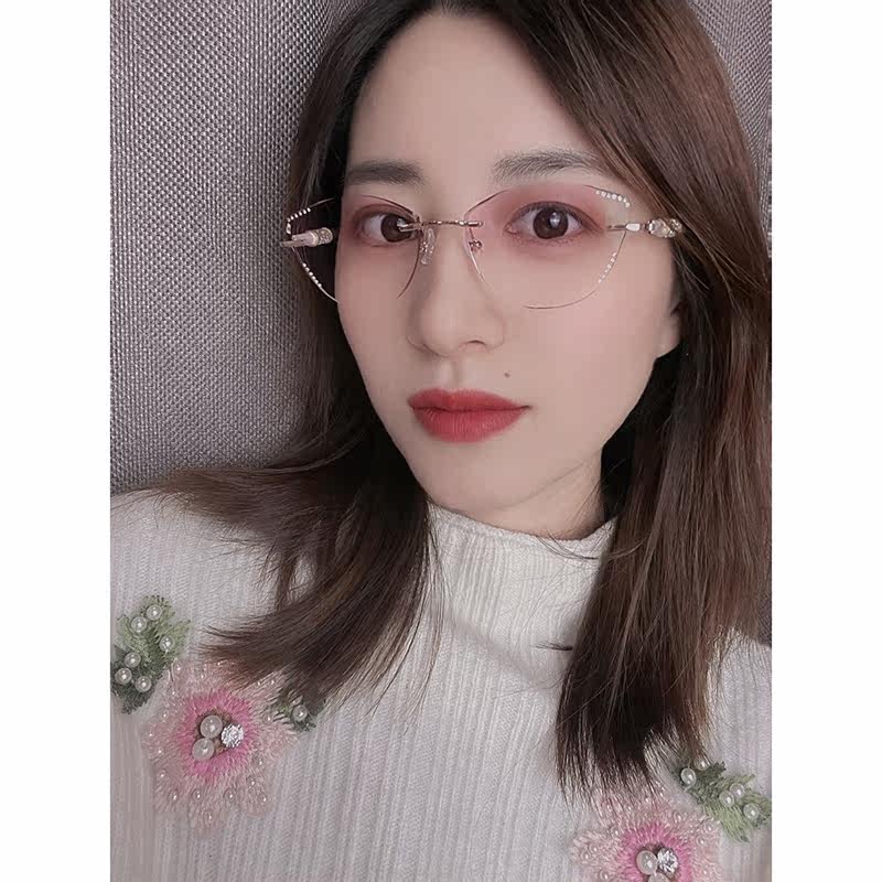 Cat ear type diamond cut edge myopia glasses female fit style elegant cat eye no frame super light anti-blue light glasses
