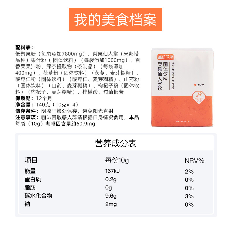 Mint Healthy Pear Fruit Cactus Cactus Drink Fuel Solid Drink 6 Great Plant Thyme Flavor Card 14 Bag Box