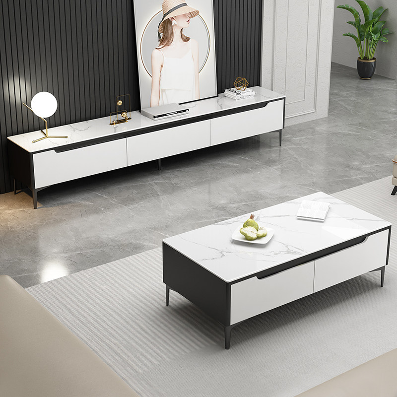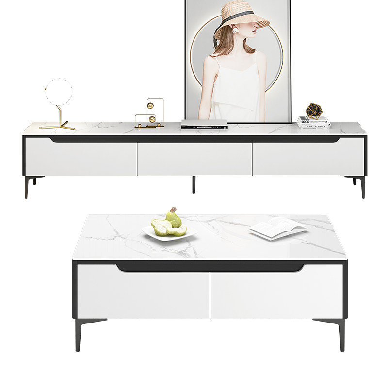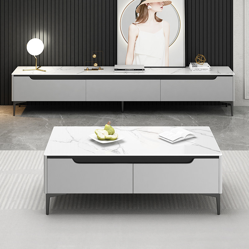 TV cabinet modern minimalist tea table combined small family type living room wall cabinet solid wood ground cabinet light lavish rockboard TV cabinet