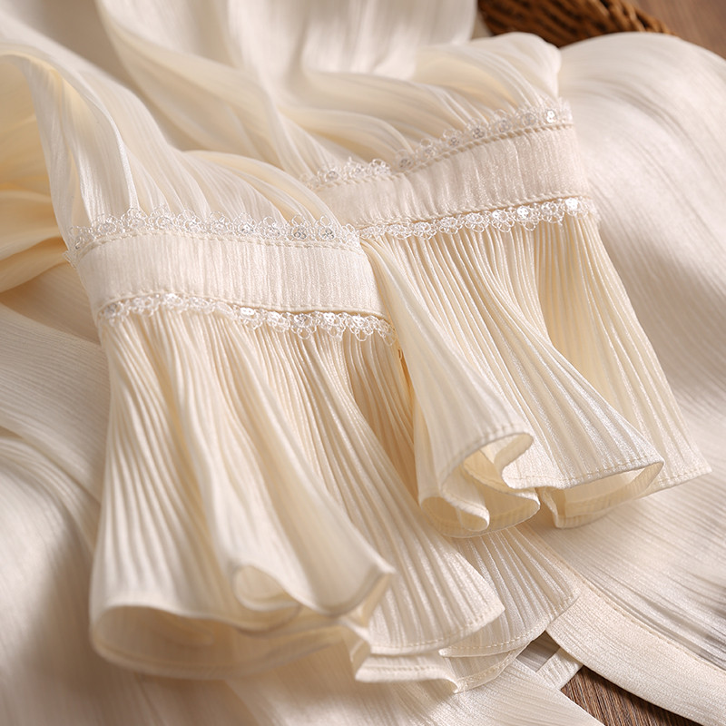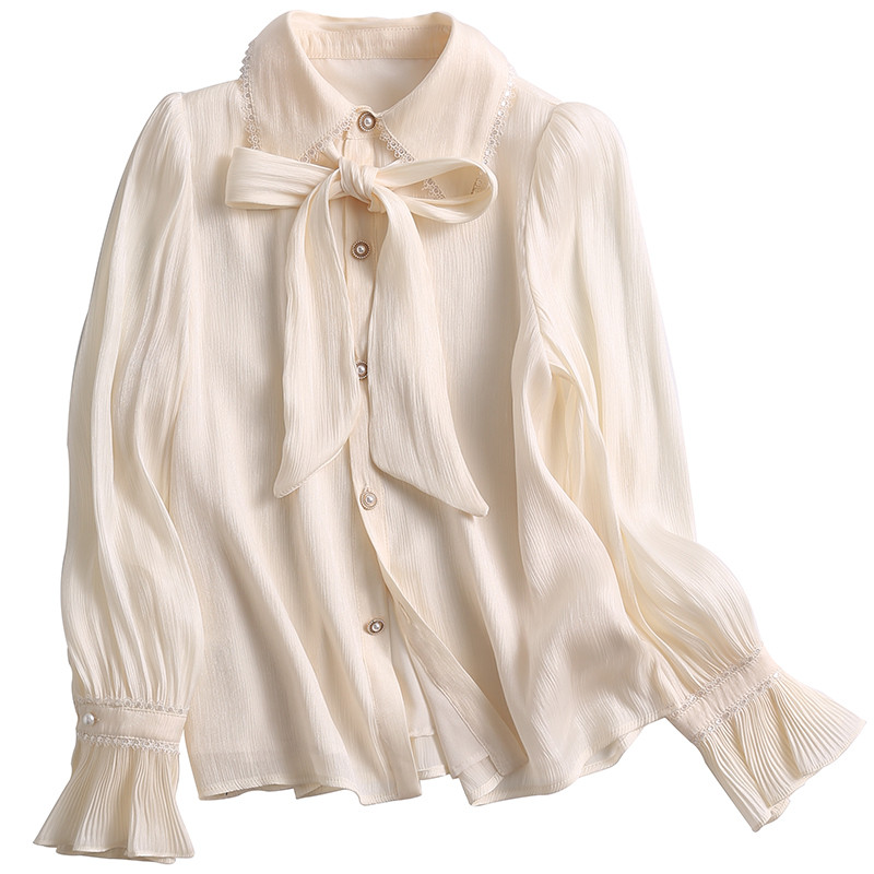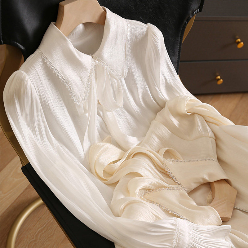 High-end European goods, Western style, artistic sense, chic top, small fragrance, streamer, white bow shirt, women's autumn and winter